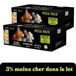Nourriture humide PetRepublic pour chats, morceaux dans une sauce délicate, saveurs MIX viande et poisson, 48x85g