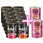 ( quantité de produits: 33 )RAFI Chat Adulte au veau/canard 10 x 400 g + Pâté WILD FARM au saumon 2 x 400 g OFFERT